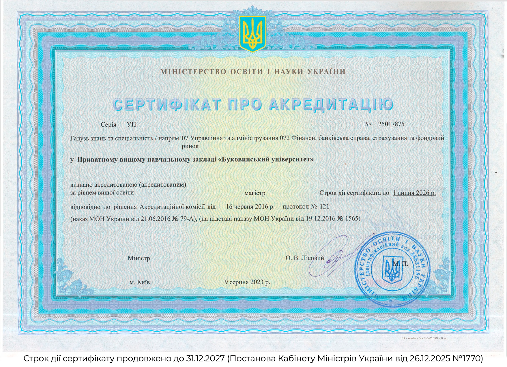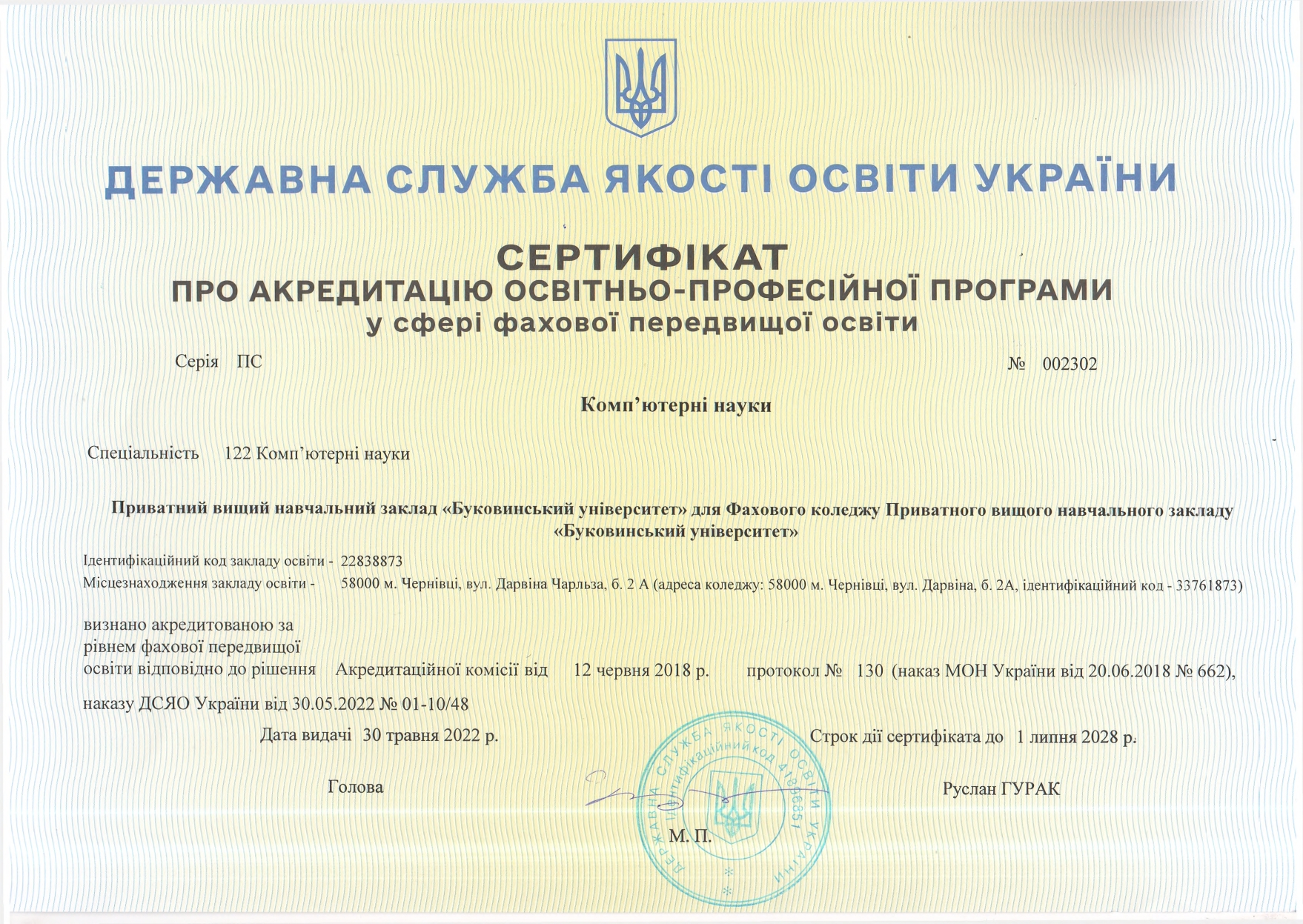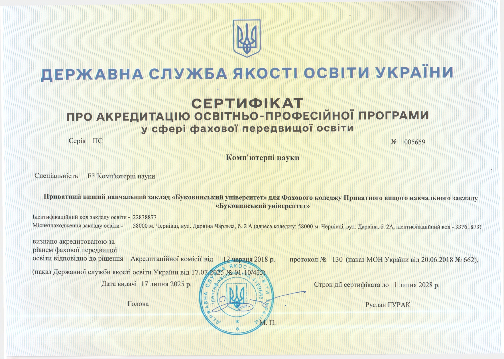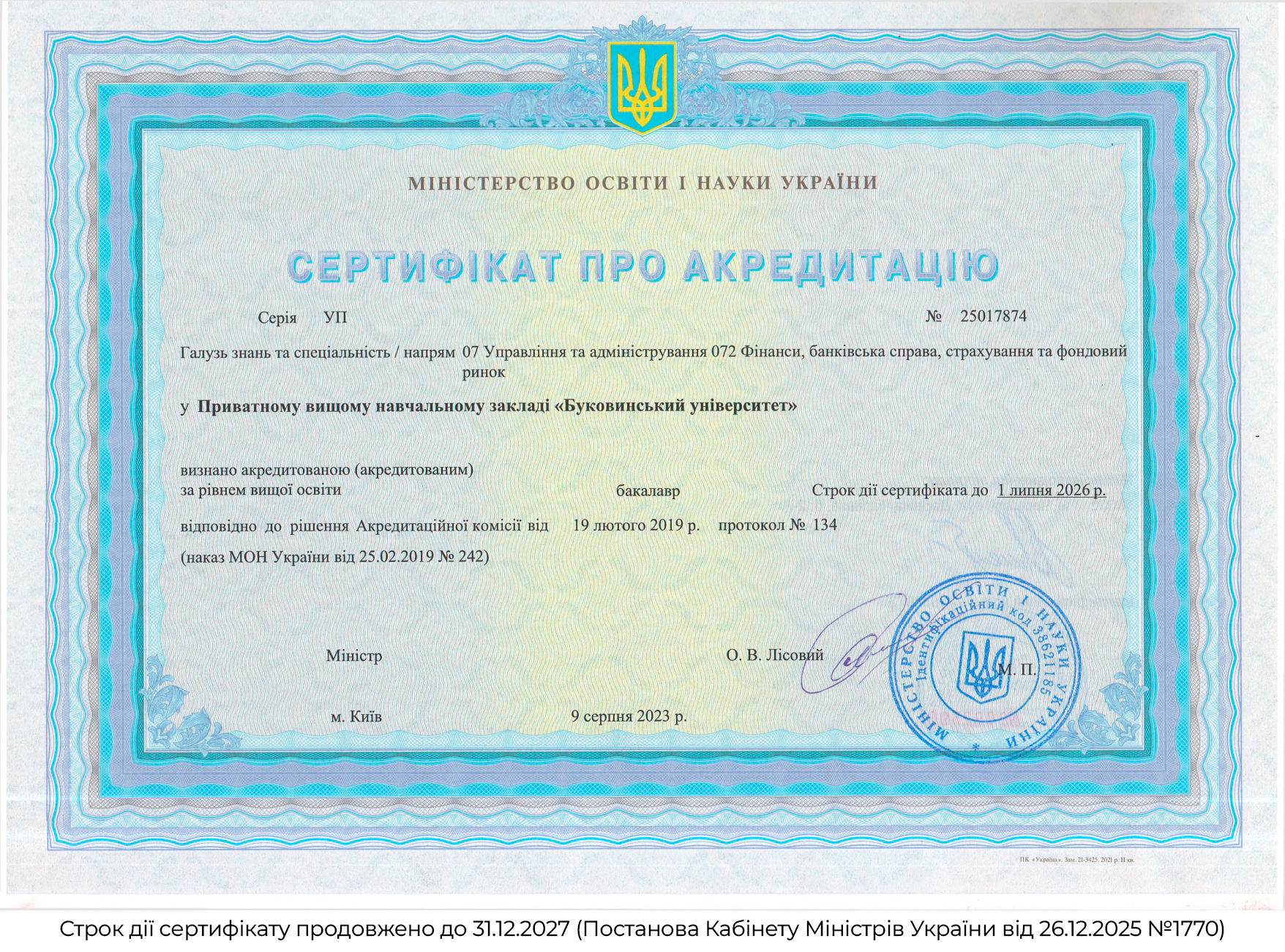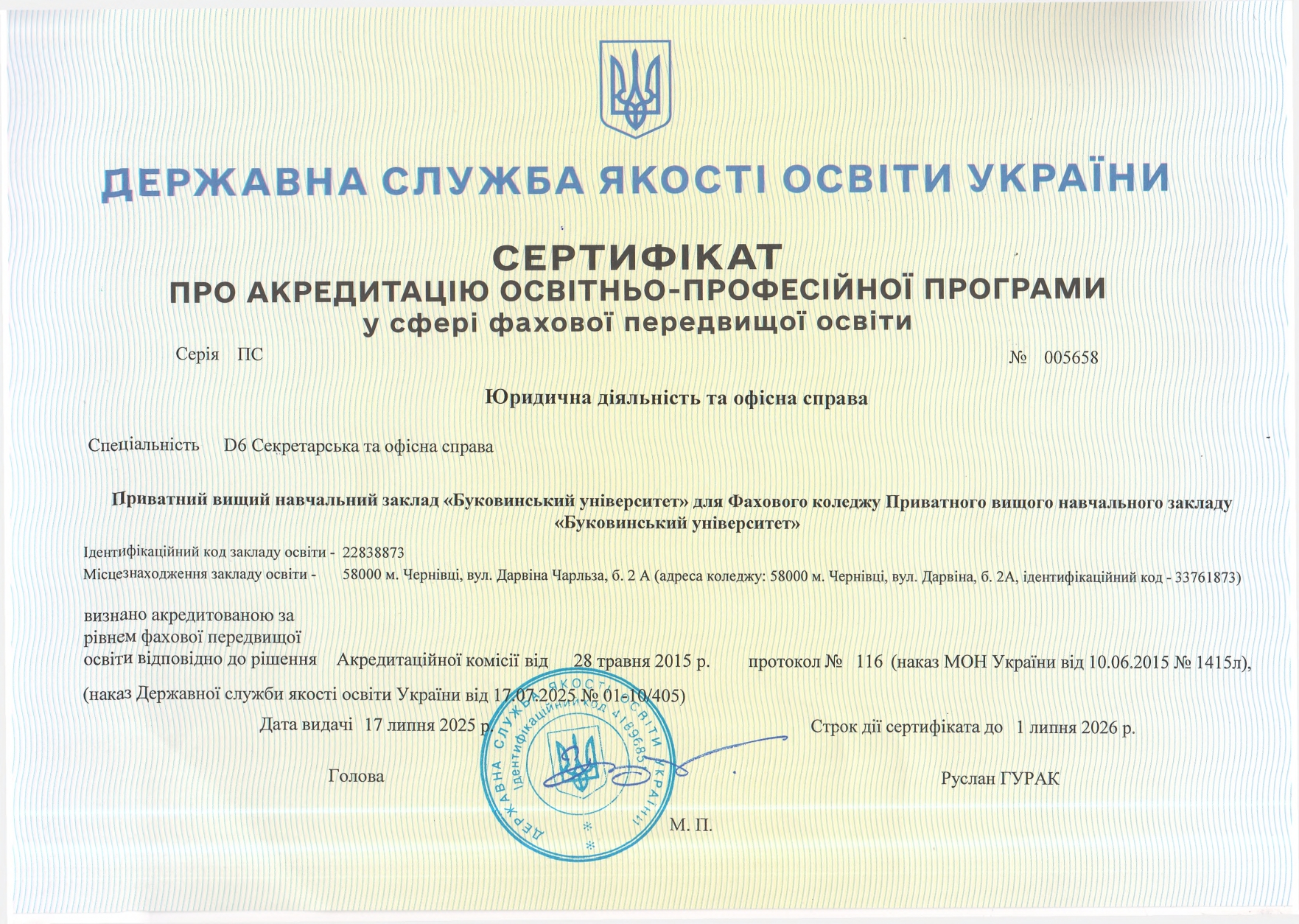 Ліцензія та сертифікати